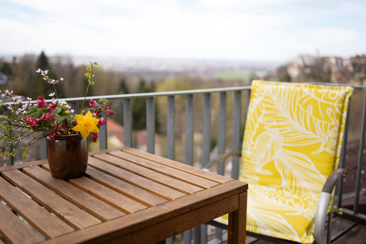 - Balkon mit Essplatz und Liegestuhl
